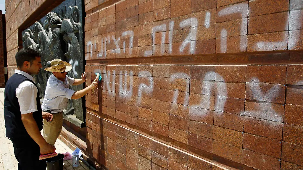 Unbekannte hatten in der Nacht zum Montag an mehreren Orten auf dem weitläufigen Gelände etwa zehn Graffitis an Wände geschmiert. Einer der Slogans in hebräischer Sprache lautete "Hitler, danke für den Holocaust", ein anderer "Die Zionisten wollten den Holocaust". Polizeisprecher Mickey Rosenfeld sagte, auf der Suche nach den Tätern ermittle man in verschiedene Richtungen. Eine davon sei der Verdacht, ultraorthodoxe Juden könnten hinter der Tat stehen.