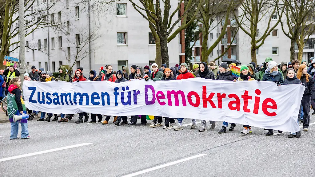 Zehntausende Menschen haben am Wochenende bundesweit gegen rechts demonstriert. Bei der dritten Großdemonstration in Hamburg seit Januar sprachen die Organisatoren um die Klimabewegung Fridays for Future von mehr als 50.000 Teilnehmerinnen und Teilnehmern, ein Polizeisprecher von 50.000 bis 60.000 Menschen. Musikalischer Höhepunkt war ein Auftritt der Hamburger Band Deichkind, die skandierte: "Wir wollen keine Nazis und keine AfD."