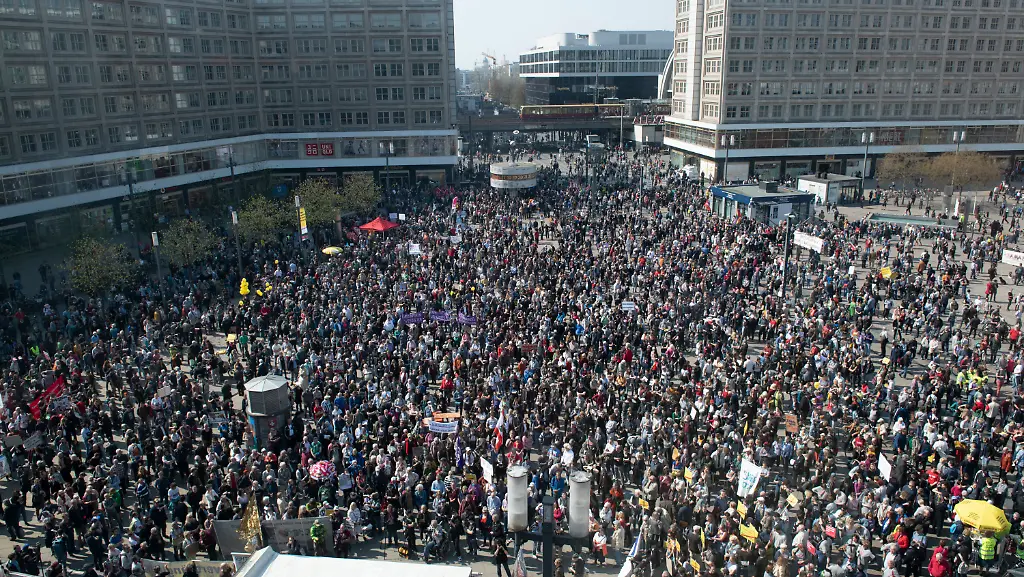 Vollgepackt: Tausende versammeln sich auf dem Alexanderplatz, um gegen zu hohe Mieten zu demonstrieren. (Foto: dpa)