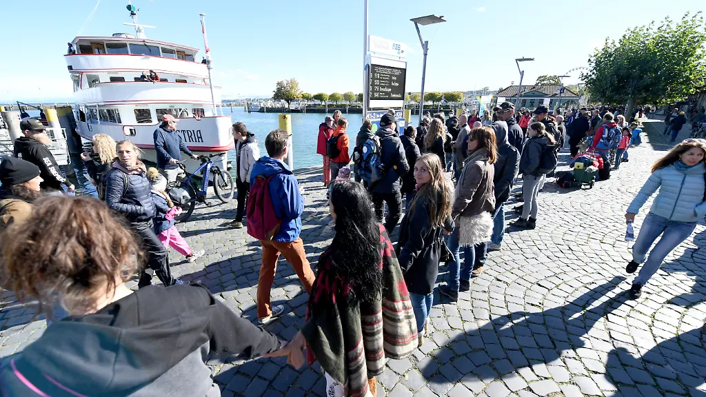 Tausende Menschen haben am Bodensee für und gegen die Corona-Politik demonstriert. Mit einer sogenannten Friedensmenschenkette hat unter anderem die Initiative "Querdenken" laut den zuständigen Polizeipräsidien Konstanz, Ravensburg und Lindau etwa 11.000 Menschen um den See herum mobilisiert. Eine wie geplant durchgängige Menschenkette durch Österreich, Deutschland, Liechtenstein und die Schweiz sei aber nicht geglückt. Die Organisatoren hatten auf 250.000 Teilnehmer gehofft. Allein in Konstanz waren 15.000 angemeldet, rund 2200 zählte die Polizei dort.