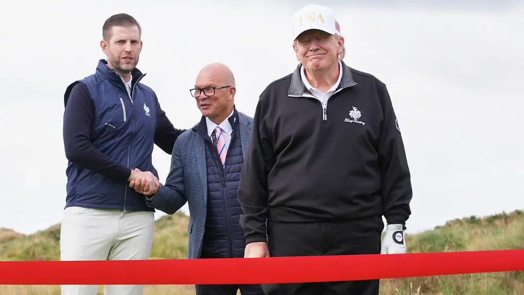 Auf dem neuen Golfplatz, an dessen Eingang der Name Trump in goldenen Buchstaben prangt, mischten sich am Morgen Sicherheitsleute, Golfer und zahlreiche Gäste, darunter der schottische Regierungschef John Swinney und Familienmitglieder Trumps. "Wir wollten, dass es der unglaublichste 36-Loch-Platz der Welt wird. Und es besteht kein Zweifel, dass das gelungen ist", sagte Trumps Sohn Eric bei der Eröffnung. Der Platz gehört einem Familienunternehmen, das von Trumps Söhnen Eric und Donald Jr. geleitet wird.