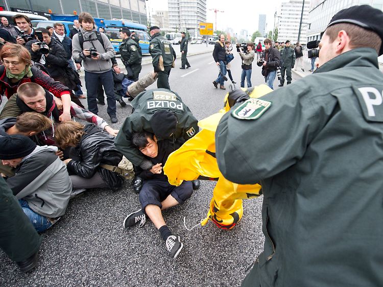 Die Gäste, Redner und Journalisten sind schon längst eingelassen, die verkürzte Veranstaltung ist in vollem Gange. "Am Vormittag hat es einige kleinere Rangeleien gegeben", sagt Frank Frederking, Leiter des Polizeiabschnitts 32. Er hat mit seinen Beamten dafür zu sorgen, dass die Besucher der Tagung unbehelligt das Kongresszentrum betreten und verlassen können. "Es ist unglaublich friedlich zugegangen. Wir sind hier in Berlin ganz andere Proteste gewohnt." Bis auf einen "kurzen Ausrutscher", als eine Handvoll Demonstranten versucht habe, einen Zugang zum BCC zu blockieren, habe man nicht eingreifen müssen. Und auch das sei nicht der Rede wert gewesen, denn die Atomgegner hätten sich lediglich auf die Straße gesetzt und somit gefährlich in den Verkehrsfluss eingegriffen. "Dabei gab es einen Übereifrigen, den wir vorübergehend festsetzen mussten", so Frederking. Er habe im Übrigen volles Verständnis für die Proteste, denn diese gehörten zu unserer Streitkultur dazu. Von Brutalität seitens der Polizei beim Einsatz vor dem BCC will er nichts wissen. "Das sind die Vorwürfe, die immer kommen", sagt der Einsatzleiter. Aber auch diese verbalen Attacken gehörten zur Protestkultur.