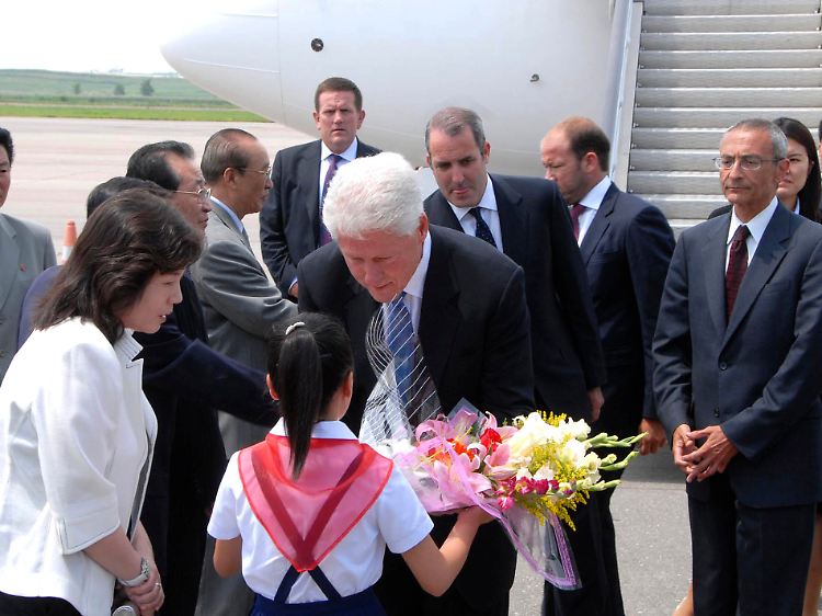 Ein Hauch von Agenten-Thriller umwehte die Ankunft Clintons in Nordkorea: Der Jet, mit dem der Ehemann der amerikanischen Außenministerin am Dienstag auf dem Flughafen von Pjöngjang landete, trug nicht einmal Hoheitszeichen, wie US-Medien berichteten.