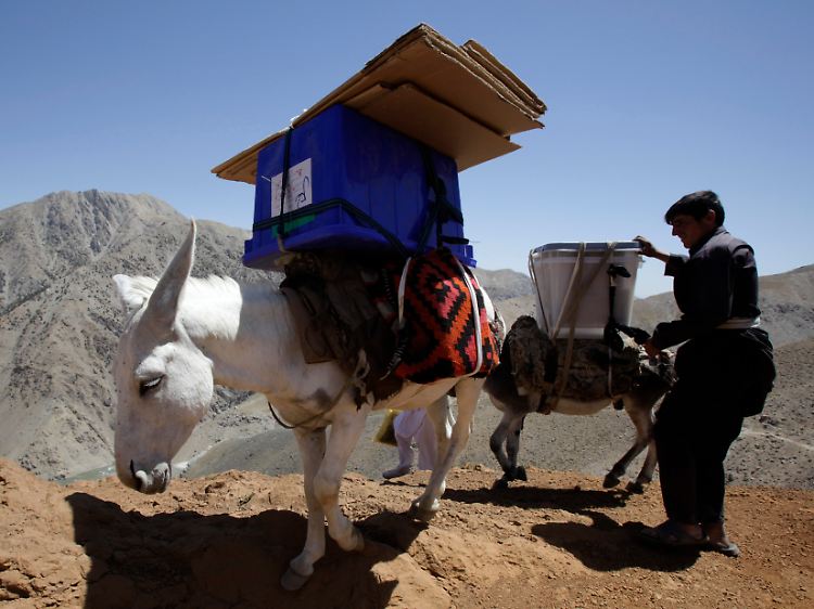 Esel als Wahlhelfer: Vor dem Urnengang transportieren die Tiere Wahlutensiilien in schwer zugängliche Gebiete des Landes.