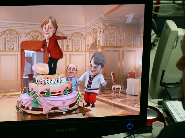 Es gibt weitere Beispiele für den neuen Kurs des Generaldirektors des Ersten Kanals, Konstantin Ernst. Populär ist etwa die Klamauk-Show "Mult Litschnosti" in 3-D-Computeranimation. Hier rollt mal eine Merkel-Figur ein Bierfass, rappt ein meist Basketball spielender US-Präsident Barack Obama oder verlustiert sich Frankreichs Nicolas Sarkozy mit seiner Carla Bruni. Die Kanzlerin springt im Hosenanzug bei einer Neujahrs-Party ihrer männlichen Kollegen sogar aus einer Torte - als Ersatz für ein Modell, dass Italiens Ministerpräsident Silvio Berlusconi vorher vernascht hat.