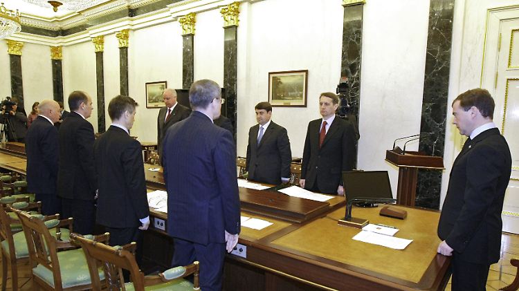 Präsident Dimitri Medwedew in der Krisensitzung nach den Anschlägen. Im Kreml wurde eine Schweigeminute abgehalten.
