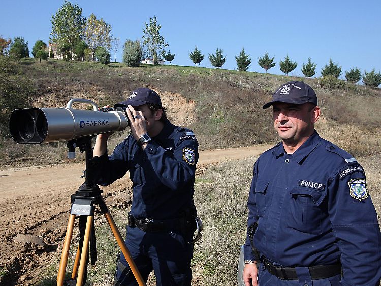 Sie kümmern sich für Europa um Flüchtlinge: Frontex-Polizisten an der griechisch-türkischen Grenze.