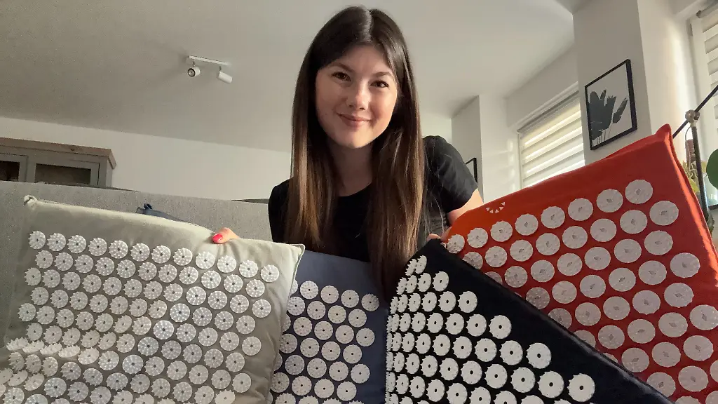 Akupressurmatten - auch bekannt als Nagel- oder Fakirmatten - liegen voll im Trend. Dabei handelt es sich um etwa handtuchgroße Stoffmatten, die mit spitzen Kunststoffnadeln besetzt sind. Legt man sich darauf, drücken die Spitzen auf Rücken oder Nacken, regen die Durchblutung an und erzeugen Wärme - Muskeln und Faszien werden gelockert, Verspannungen gelindert. Für unseren Test steht uns Heilpraktikerin Amélie Haas aus der Praxisgemeinschaft am Dom in Köln zur Seite. Sie ist seit zehn Jahren auf Akupunktur spezialisiert und sieht in den Matten eine sinnvolle Ergänzung für die Selbstbehandlung zu Hause. Allerdings könnten sie "keine richtige Behandlung (ersetzen), die auf jeden Patienten individuell abgestimmt werden kann", stellt die Expertin klar.