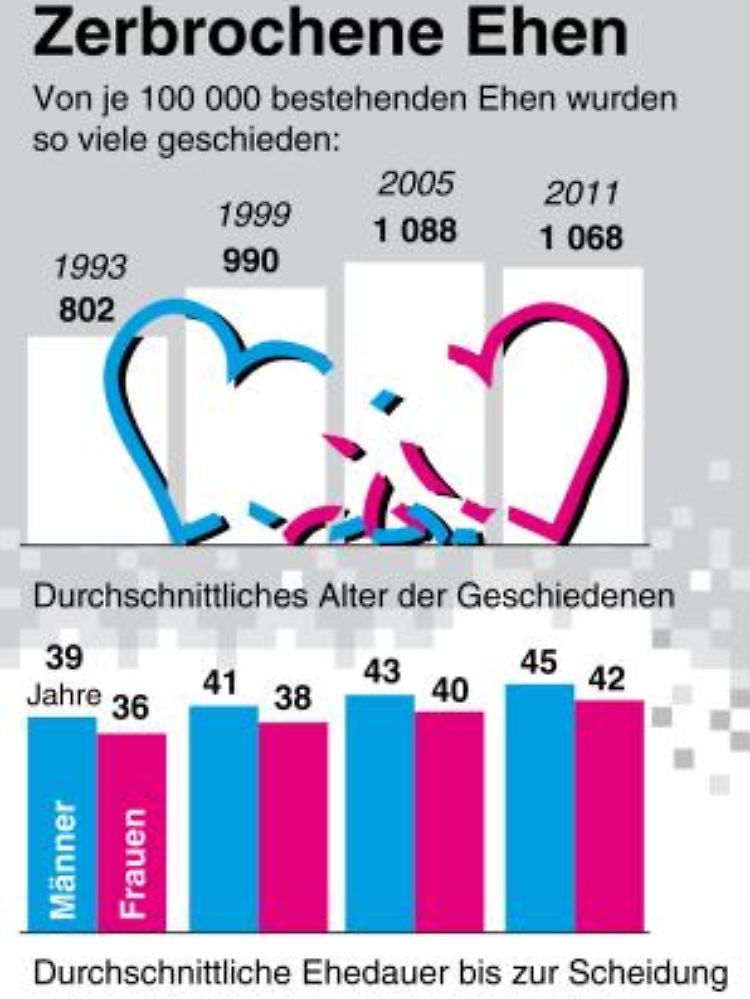 Knapp die Hälfte der Ehepaare, die sich 2011 scheiden ließen, hat Kinder unter 18 Jahren.