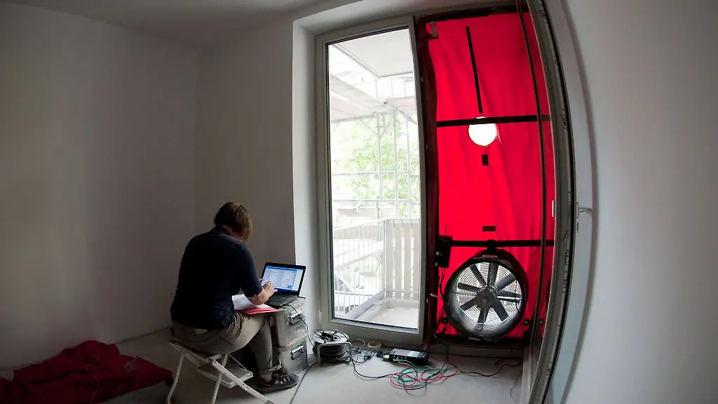 Immer möglich ist laut VPB dagegen ein Blower-Door-Test, also eine Gebläse-Tür-Messung. Bei diesem Differenzdruck-Messverfahren wird die Luftdichtheit eines Gebäudes gemessen. Grob gesagt wird dabei ein Ventilator mit kalibrierter Messblende eingesetzt. Das Gerät wird mit einer luftundurchlässigen Plane umgeben und in eine Tür- oder Fensteröffnung eingesetzt. Dann wird für den geförderten Volumenstrom Luft in das zu untersuchende Gebäude gedrückt oder herausgesaugt. So können selbst kleinste Löcher aufgespürt werden.