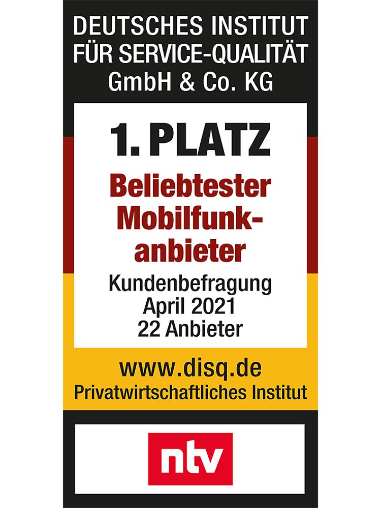 Das beste Ergebnis in puncto Kundenzufriedenheit und damit Platz eins sichert sich Aldi Talk (Qualitätsurteil: "sehr gut"). Der Mobilfunk-Discounter punktet aus Kundensicht am meisten unter dem Preisaspekt und sorgt hier für eine sehr hohe Zufriedenheit. Der Service von Aldi Talk überzeugt die Befragten ebenfalls: Gut 94 Prozent der Kundinnen und Kunden zeigen sich hiermit zufrieden. Die Bereitschaft zur Weiterempfehlung fällt zudem unter allen Mobilfunkanbietern am höchsten aus.