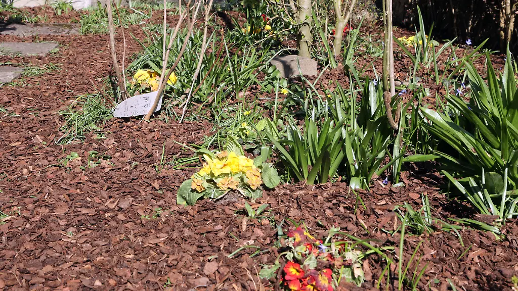 Viel wichtiger ist die richtige Ausbringung von Mulch. Die Schicht sollte gut acht bis zehn Zentimeter dick sein. Wichtig: Das gilt nicht für frisch ausgebrachtes Material. Gemessen wird erst, wenn sich der Mulch gesetzt hat.