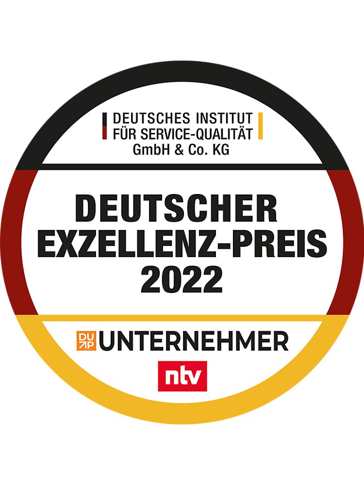 Das Deutsche Institut für Service-Qualität hat gemeinsam mit ntv und dem DUP Unternehmer-Magazin den Deutschen Exzellenz-Preis 2022 vergeben. Eine hochkarätig besetzte Jury zeichnete damit herausragende innovative Lösungen und Leistungen aus.