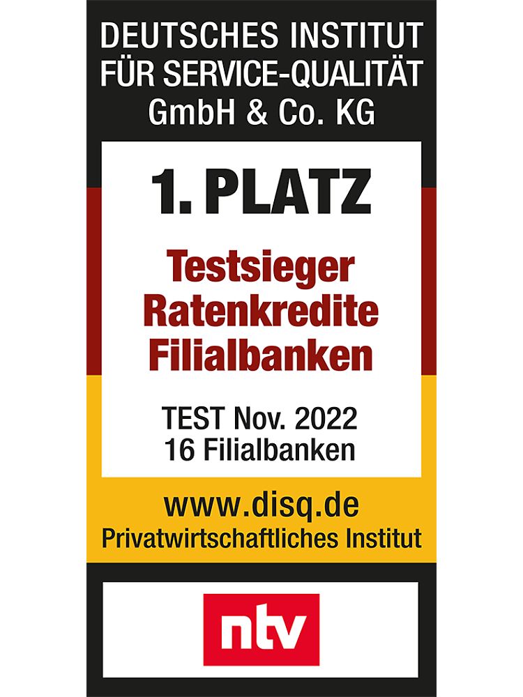 Die Sparda-Bank Hamburg ist mit dem Qualitätsurteil "gut" Testsieger. Das Finanzinstitut punktet mit guten Kreditkonditionen - sowohl in der Filiale als auch im Onlinevertrieb. Über alle untersuchten Szenarien bietet die Bank bonitätsunabhängige Zinsen in gleichbleibender Höhe. Die Kreditausstattung umfasst u. a. kostenfreie Jahreskontoauszüge sowie die Möglichkeit von Sondertilgungen. Auch der Online-Service erzielt dank des Internetauftritts mit hohem Informationswert ein gutes Resultat.