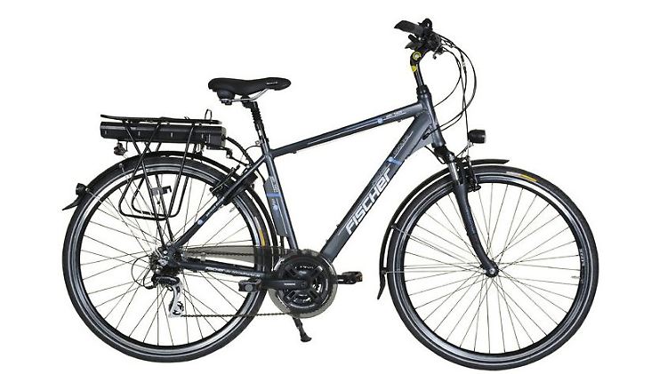 Zusammen mit der "Bild"-Zeitung hat Fischer einst das "Volks-E-Bike" für 999 Euro herausgebracht. Das Herren Trekking Proline ETH 1401 ist 100 Euro teurer, bietet aber auch etwas mehr. Ausgestattet ist das 24 Kilo-Bike mit Suntour-Federgabel und einer gefederten Sattelstütze. Die Shimano-Acera-Kettenschaltung lädt mit ihren 24 Gängen auch zu längeren Touren ein. Möglich sind sie jedenfalls, bei guten Bedingungen reicht der Akku für bis zu 140 Kilometer. Der sechs Kilo schwere 36 Volt-Motor sitzt im Hinterrad, diese Position bietet gerade bei steilen Anstiegen gute Traktion. Anti-Rutsch-Tourenpedale sorgen für einen sicheren Halt beim Fahren und der Gepäckträger hat Bügel für Packtaschen. Tester loben den gut ausgestatteten Fahrradcomputer, der neben der aktuellen Geschwindigkeit und der Reichweite unter anderem auch Höchstgeschwindigkeit und Tagesstrecke angibt. Über die integrierte USB-Buchse kann man während der Fahrt das Handy aufladen. Aktuell ist das Rad ab 1099 Euro* zu haben.