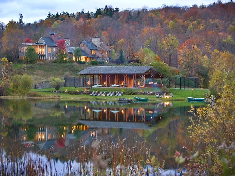 Das Luxusresort "Twin Farms" bietet eine abgeschiedene Umgebung und individuell gestaltete Unterkünfte inmitten der malerischen Landschaft von Vermont.
