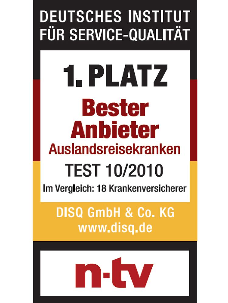 Welche Versicherer bieten nicht nur günstige Konditionen, sondern zudem auch umfangreiche Leistungspakete? Im Auftrag von n-tv untersuchte das Deutsche Institut für Service-Qualität die 20 größten privaten Krankenversicherer in Deutschland. Gesamtsieger und damit "Bester Anbieter Auslandsreisekrankenversicherung 2010" wurde Envivas. Das Unternehmen überzeugte durch Top-Service sowie günstige Konditionen für Jahresverträge.