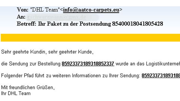 06.03.2015, 14:41 UhrEin Paket ist unterwegs, wurde womöglich schon geliefert, sagt die Mail. Da klickt man schnell auf den Link zur Sendungsverfolgung. Doch womöglich holt man sich so einen Virus auf den Rechner.