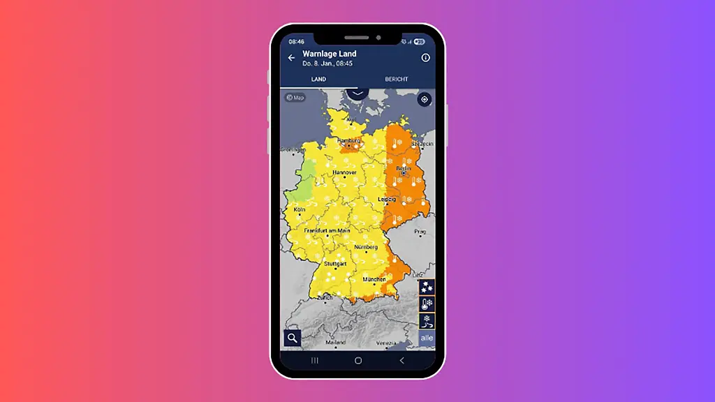 Violett ist die höchste Warnstufe und steht für extremes Unwetter, großräumige Beeinträchtigungen und Lebensgefahr, etwa bei extremem Schneefall oder gefährlichem Glatteis. Der DWD empfiehlt dann dringend, das Haus nicht zu verlassen und behördliche Hinweise zu beachten.