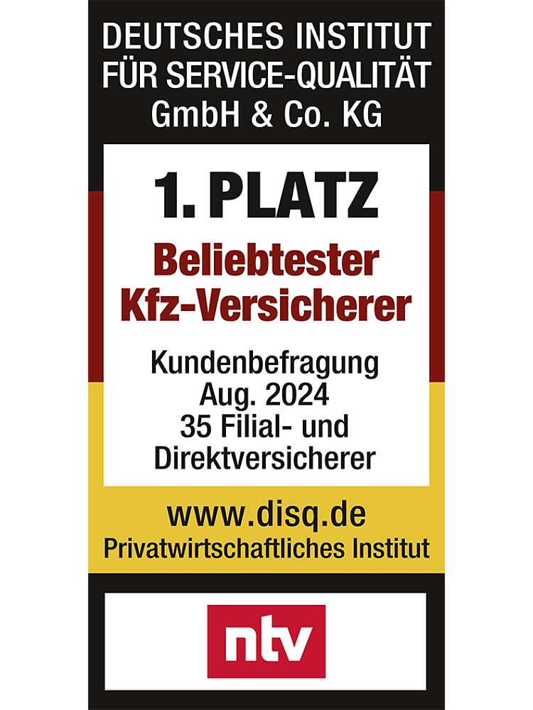HUK24 nimmt den zweiten Rang ein, ebenfalls mit einem sehr guten Resultat. Der Direktversicherer erzielt Top-2-Platzierungen in den Bereichen Preis-Leistungs-Verhältnis, Vertragsleistungen sowie Service - mit fast 93 Prozent positiven Bewertungen sticht insbesondere die hohe Zufriedenheit mit den Vertragsleistungen hervor. Zudem überzeugt HUK24 mit der im Vergleich zweithöchsten Kundenbereitschaft zur Weiterempfehlung.