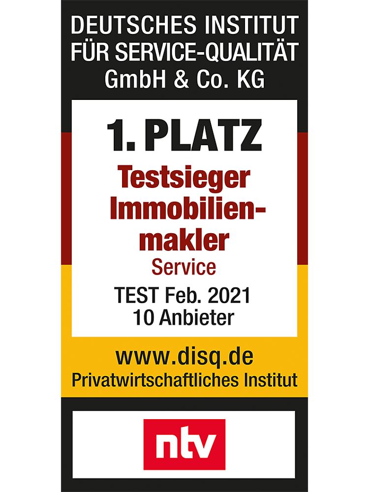 Rang zwei nimmt Falc Immobilien (Qualitätsurteil: "gut") ein. Das Unternehmen profiliert sich mit einer guten E-Mail-Bearbeitung: Die sehr verständlich verfassten Antworten treffen bereits nach durchschnittlich rund vier Stunden ein. Am Telefon beraten die kompetenten Makler häufig umfassend. Die Website punktet mit kundenfreundlichen Funktionen, etwa einem individuellen Suchauftrag und einem Rückrufangebot.