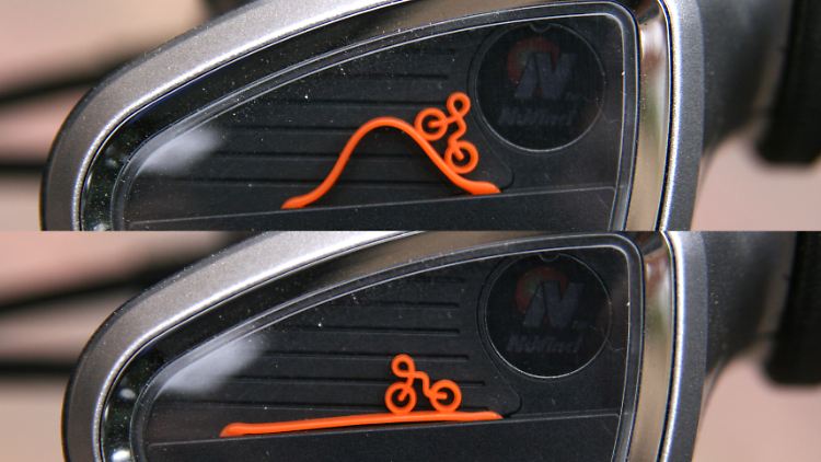 An die stufenlose Schaltung muss man sich erst gewöhnen. Man ist ja schließlich Gang-fixiert - egal ob beim Auto- oder Fahrradfahren. Eine Ganganzeige von beispielsweise eins bis neun gibt es bei der Nuvinci-Schaltung nicht. Um einen Eindruck zu vermitteln, welche Einstellung angebracht ist, liefert Nuvinci am Drehgriff ein kleines Symbol, auf dem ein Fahrradfahrer und eine Kurve abgebildet sind. Muss der Fahrradfahrer steil die Kurve hinauf radeln, hat man quasi einen kleinen Gang eingelegt und kann leicht treten. Die Kurve lässt sich bis zur geraden Linie verwandeln, was die Ebene und somit die schwerste Übersetzung symbolisiert. Hat man sich einmal an die Schaltung gewöhnt, lässt sich damit wunderbar umgehen. Hier hakt und klemmt nichts – bis auf das letzte Drehmoment zur schwersten Übersetzung. Hier muss man im Vergleich zur sonst leichten Schaltbewegung etwas mehr Kraft aufwenden.