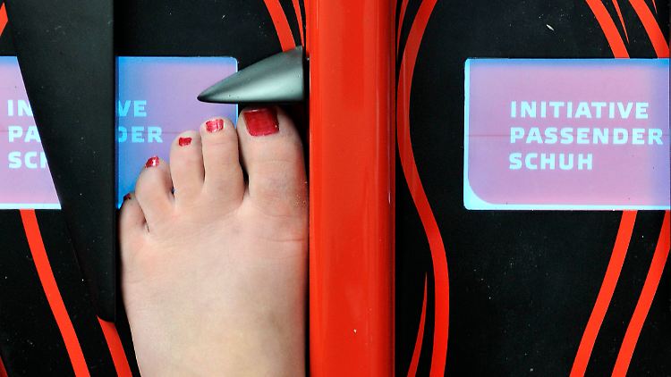 80 Prozent der Deutschen tragen Schuhwerk, das nicht ihren Maßen entspricht. Dieses Ergebnis des "Deutschen Fußreports" teilen das Deutsche Schuhinstitut (DSI) und der Bundesverband der Deutschen Schuhindustrie (HDS) mit. Eine weitere Erkenntnis: Die Füße sind in den vergangenen Jahrzehnten zwar nicht länger, dafür aber auffällig breiter geworden. Die optimale Schuhweite zu finden, ist den Forschern zufolge das Hauptproblem der Verbraucher. Derzeit gibt es nur vier Weiten, erforderlich wären 17. "Das ist nicht realisierbar", sagte Studienleiterin Monika Richter vom Prüf- und Forschungsinstitut Pirmasens (PFI).