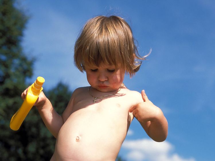 Der Lichtschutzfaktor gibt an, wie stark ein Mittel vor UVB-Strahlen und damit vor Sonnenbrand schützt. Bei Kindern kann sich die ungeschützte Haut schon nach fünf bis zehn Minuten in der Sonne röten. Mit einem Lichtschutzfaktor 30 zum Beispiel verlängert sich die Zeitspanne um etwa das 30-fache auf 150 bis 300 Minuten. Hautärzte raten allerdings, bereits nach zwei Dritteln dieser Zeit aus der Sonne zu gehen. Auch Nachcremen verlängert den Schutz nicht. Die pralle Mittagssonne sollte vor allem für Kinder ohnehin tabu sein.