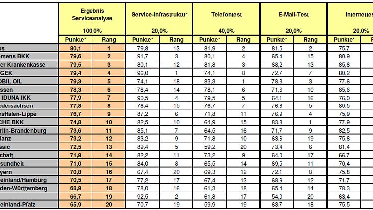 Mobil Oil kletterte auf den dritten Rang. Ausschlaggebend war vor allem der sehr gute telefonische Kundenservice. Auch wer sich für Disease-Management-Programme interessiert, wird hier fündig. Servicesieger wurde AOK Plus, die als einzige Kasse das Urteil "sehr gut" im Servicetest erreichte.