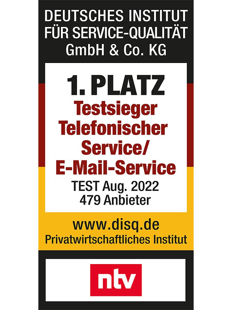 Im Gegensatz zu den Hotline-Leistungen verbleibt der Service per E-Mail trotz einer leichten Verbesserung auf einem nur ausreichenden Niveau (aktuell: 52,5 Punkte, 2021: 51,2 Punkte). Das beste Ergebnis im telefonischen Service erreichen die Unternehmen der Kategorie "Wohnen im Alter" (Branchenwert: 67,6 Punkte) - beim Service per E-Mail ist der Finanzsektor (58,6 Punkte) führend.