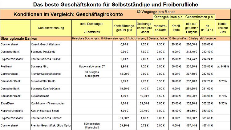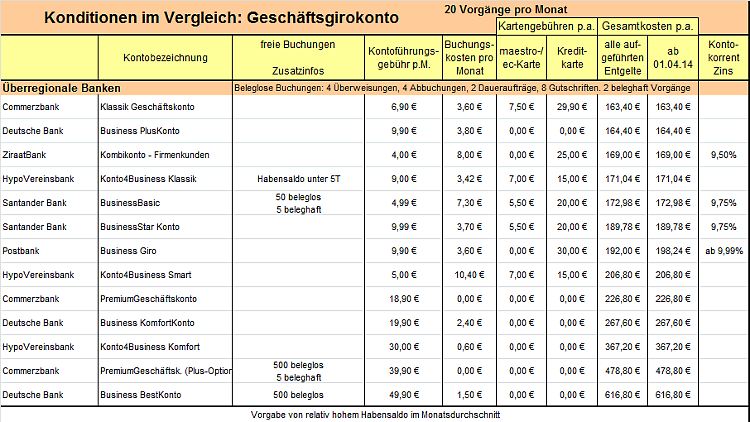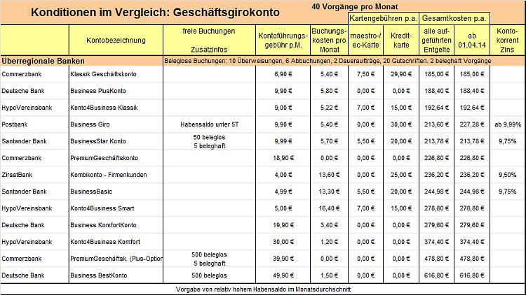 Es ging bei diesem Test also rein um die Kosten, die für Buchungsvorgänge, ec-Karte und Kreditkarte anfallen. Die Beratungsleistung im Vorfeld der Geschäftsgründung, floss nicht in die Wertung mit ein.