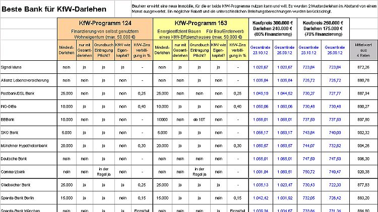Einige andere Banken, wie ING-DiBa, Münchener Hypothekenbank oder Postbank/DSL Bank sind bereit, einen Teil der jährlichen KfW-Vergütung für die Bank als Zinsermäßigung an den Bauherrn weiter zu geben. Das zeigt, dass diese Banken KfW-Darlehen gerne abwickeln, weil sie ansonsten keinen Anreiz schaffen würden.