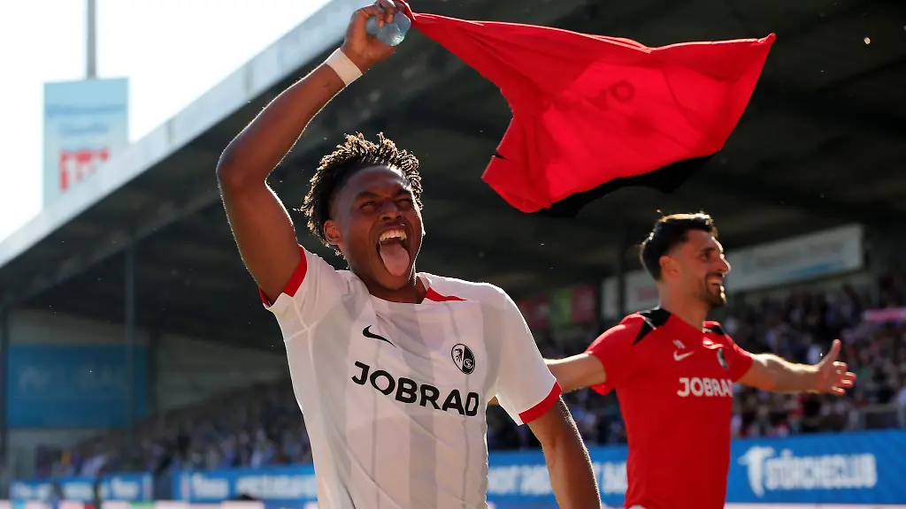 Freiburgs-Junior-Adamu-jubelt-nach-dem-Sieg-bei-Holstein-Kiel