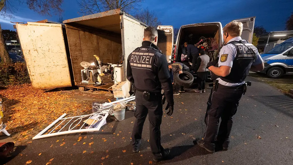 Und bald darauf auch schon wieder aus – bei einer Kontrolle der Polizei, die an diesem Nachmittag in Eggenstein-Leopoldshafen bei Karlsruhe illegalen Sperrmüll-Sammlern das Handwerk legen will.