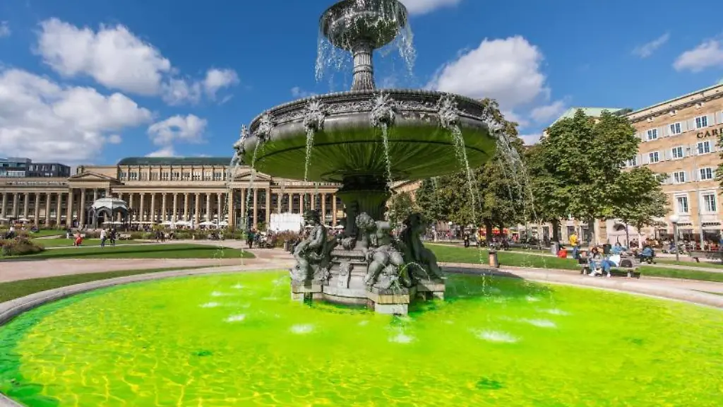 Baden-WürttembergKlimaaktivisten färben Brunnen in Stuttgart grün ein