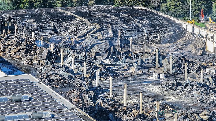 "Wir haben derzeit keinen Hinweis auf Brandstiftung - können dieses aber auch nicht ausschließen", sagte ein Polizeisprecher. Das Areal sei sehr groß und es gebe noch zahlreiche Glutnester. Zudem drohten einige Gebäudeteile einzustürzen. Bagger-Fahrzeuge unterstützten der Mitteilung zufolge die Löscharbeiten, indem sie Schutt und Gebäudeteile beiseite räumten und so der Feuerwehr den Zugang zu weiteren Brandherden ermöglichten.
