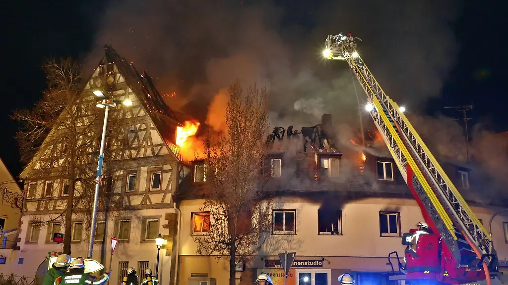 Das Feuer war am Sonntag im Dachstuhl eines der Häuser ausgebrochen. Von dort sollen die Flammen auf das angrenzende historische Fachwerkgebäude übergegriffen haben. Sechs Menschen wurden laut Polizei leicht verletzt. Die Ermittler schätzen den Schaden auf mindestens 1,5 Millionen Euro.