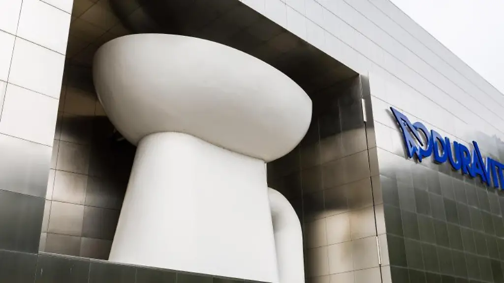 Das überdimensionale WC ist in die Front des Gebäudes des Sanitärherstellers Duravit eingelassen. Direkt vor der Fabrik in Hornberg (Ortenaukreis) baute das Schwarzwälder Unternehmen 2004 ein großes Ausstellungszentrum. Dessen Blickfang ist die Toilette im XXL-Format. Der moderne Bau des Design-Centers mit fünf Stockwerken und in Form eines Trapezes wurde gestaltet vom französischen Architekten und Designer Philippe Starck.