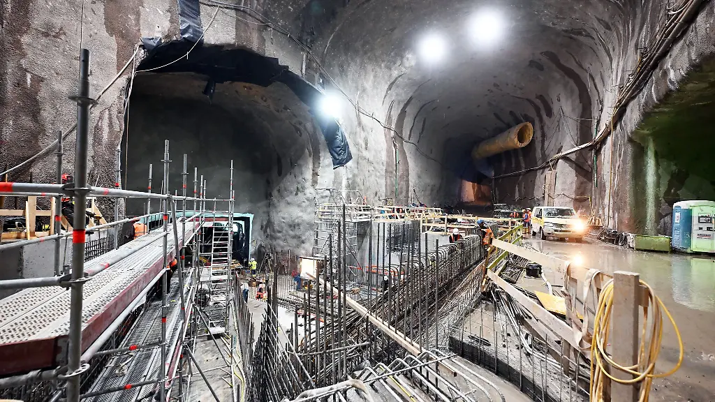 Forbach (dpa/lsw) - Grelle Leuchten erhellen die meterhohen Schächte, Metallstreben ragen aus dem Boden, Menschen mit Warnwesten und Schutzhelmen sind unterwegs - sie wirken wie Zwerge in dem Tunnelsystem.