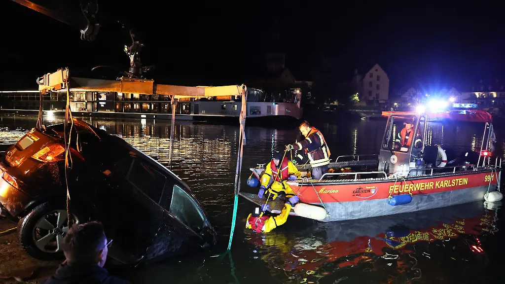 Karlstein am Main (dpa/lby) - Zwei Senioren sind an der hessischen Grenze im Landkreis Aschaffenburg mit ihrem Wagen über das Ende einer Anlegestelle in den Main gekippt. Wie ein Polizeisprecher sagte, saßen die beiden im Auto, als es am Sonntagabend aus bislang unklaren Gründen in Richtung des Flusses rollte. Daraufhin kippte es mit der Vorderachse über den Rand der Anlegestelle in Karlstein am Main.
