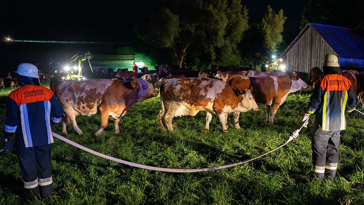Insgesamt befanden sich laut Polizei rund 120 Kühe und Kälber sowie drei Ziegen in den Stallungen. Die überlebenden Tiere konnten laut Polizei befreit und auf eine angrenzende Wiese gebracht werden - von dort aus wurden sie in umliegenden Bauernhöfen untergebracht.
