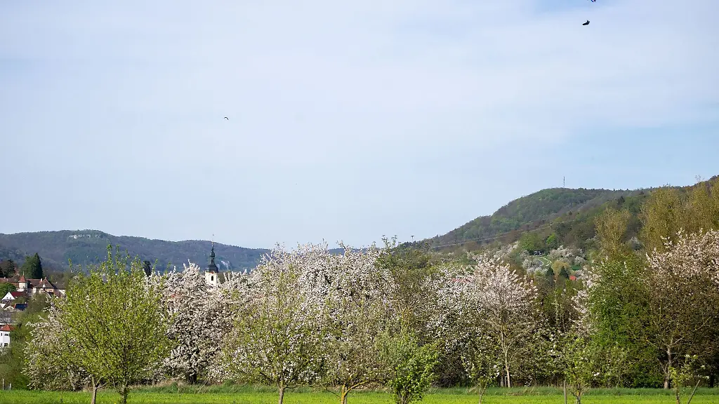 Die Kirschbäume in Franken stehen gerade in der Blüte. Das Naturschauspiel erfreut Ausflügler und Touristen. Die Obstbauern blicken bereits Richtung Ernte.