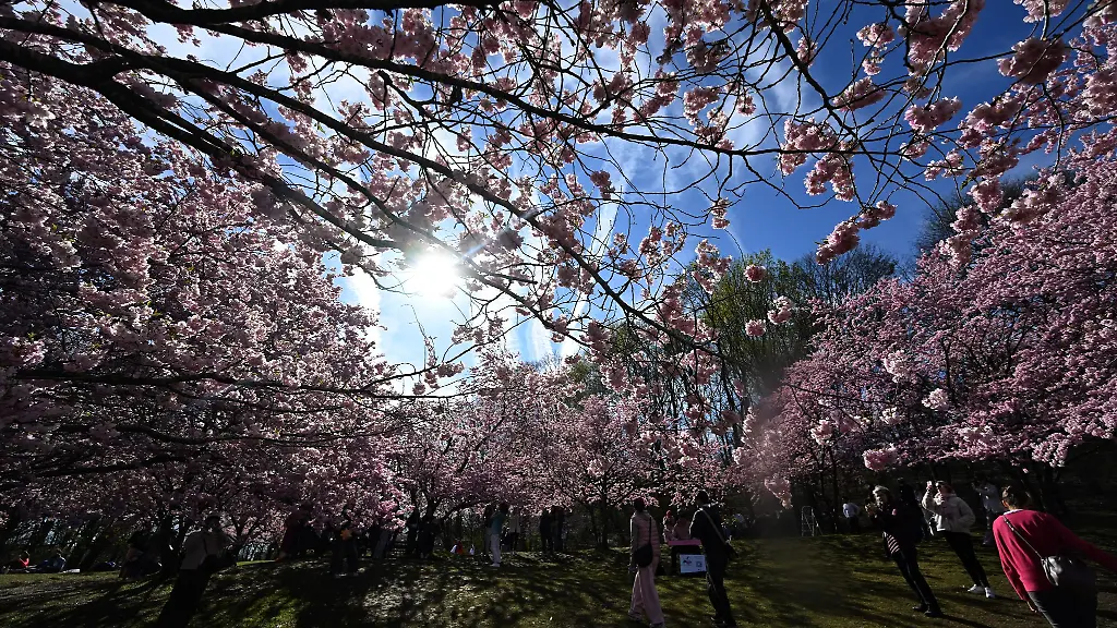 Im-Muenchner-Olympiapark-bluehen-bereits-die-Baeume