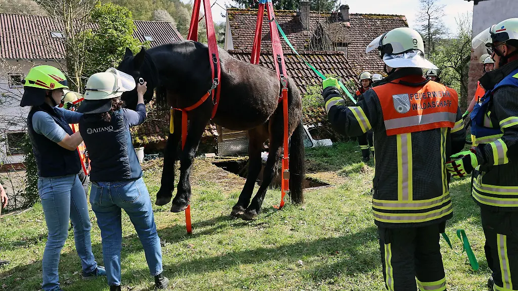 Ein schmaler Schacht, ein gefangenes Pferd und eine Rettung, die alle bewegt: Wie Feuerwehr und ein Veterinär das Tier aus der misslichen Lage befreien.
