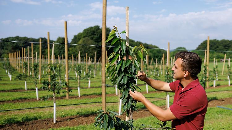 Chef Jonas Maußner und sein Team testen hier beispielsweise neue, anpassungsfähige Sorten - die später blühen, damit der Frost im Frühjahr sie nicht schädigen kann. Und sie prüfen, wie die Früchte vor Hagel, Starkregen oder Sonnenbrand bei extremer Hitze am besten zu schützen sind. "Kulturschutz wird immer wichtiger", sagt Maußner.
