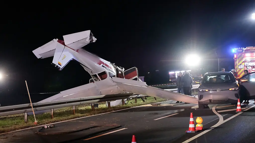 Der Pilot konnte laut Polizei das Flugzeug selbstständig verlassen. Der Rettungsdienst behandelte ihn an der Unfallstelle. Die Straße blieb über Stunden bis zum frühen Dienstagmorgen gesperrt.