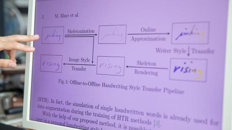Erlangen (dpa/lby) - Unsere Handschrift ist einzigartig. Nur wir schreiben so - zumindest bisher. Erlanger Forscher haben jetzt eine künstliche Intelligenz entwickelt, die Handschriften imitieren kann. Diese könnte Menschen helfen, die wegen Verletzungen oder anderen Beeinträchtigung nicht mehr schreiben können, trotzdem noch persönliche Texte in ihrer eigenen Schrift zu verfassen.