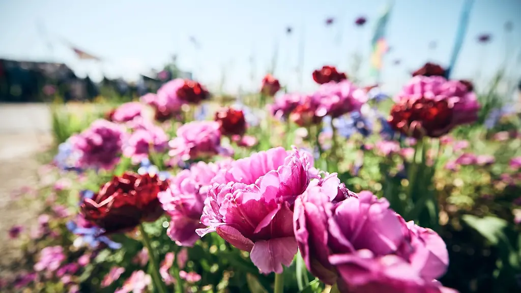 Kirchheim b. München (dpa/lby) - Noch sind Bagger unterwegs, doch in den Beeten sind die Tulpen voll aufgeblüht - durch das warme Wetter früher als geplant: In vier Wochen startet in Kirchheim bei München die diesjährige Landesgartenschau.