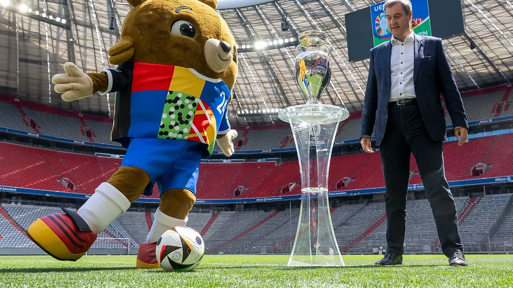 Bayerns Ministerpräsident Markus Söder bekam vorab am Montag in der Allianz Arena eine Gelegenheit für ein Foto mit Pokal und Maskottchen "Albärt". "Wir hoffen, dass die #Europameisterschaft in Deutschland wieder ein #Sommermärchen wird", schrieb der CSU-Politiker nach dem Termin auf X. "Zwei deutsche Mannschaften im Finale großer europäischer Wettbewerbe lassen auch für die EM hoffen und wecken die Vorfreude."