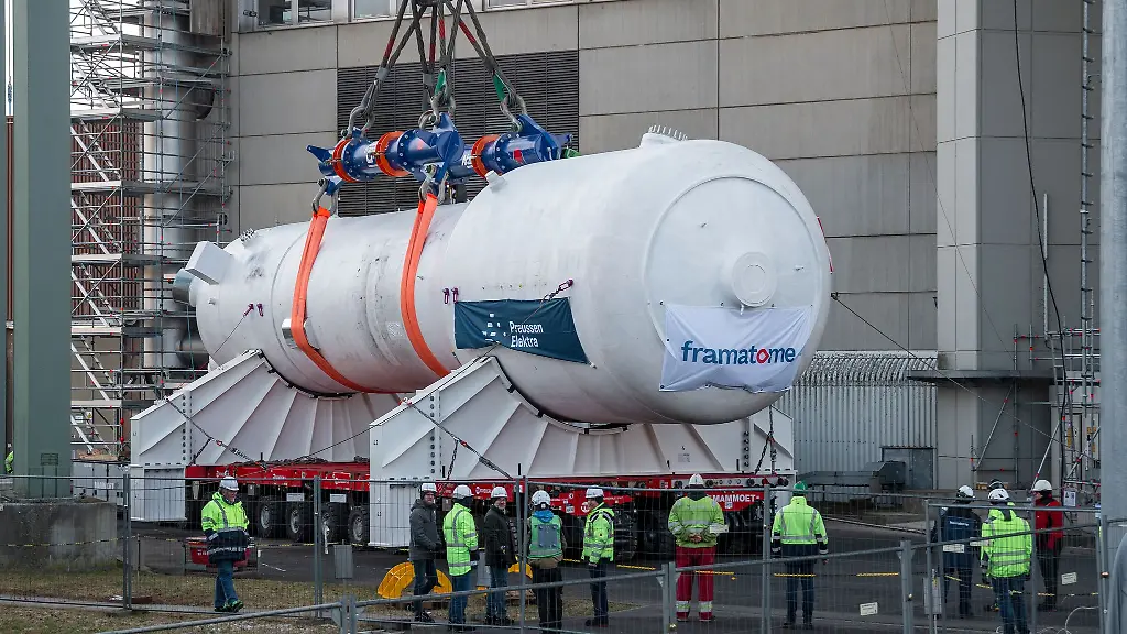Grafenrheinfeld (dpa/lby) - Der Rückbau des ehemaligen Atomkraftwerkes Grafenrheinfeld in Unterfranken schreitet voran. Stück für Stück werden derzeit im Zeitlupentempo die sogenannten Dampferzeuger aus dem Reaktorgebäude geholt. Vier Stück sind es insgesamt - und weil sie radioaktiv kontaminiert sein können, ist Vorsicht angesagt.
